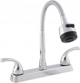 Mezcladora para fregadero fabricada con plástico ABS y acabado en cromo. Permite manipular su nariz y manguera flexible para distribuir el agua donde lo necesites.... Leer más